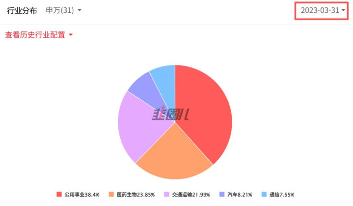至2023年一季度末时,前十大重仓配置的5个行业中,“公用事业”在前十大重仓中的占比已接近40%!可见,刘志辉自2022年起就相当看好“高股息红利”资产,这也说明,他会基于中长线做一些方向性的判断,并且敢于重仓配置。